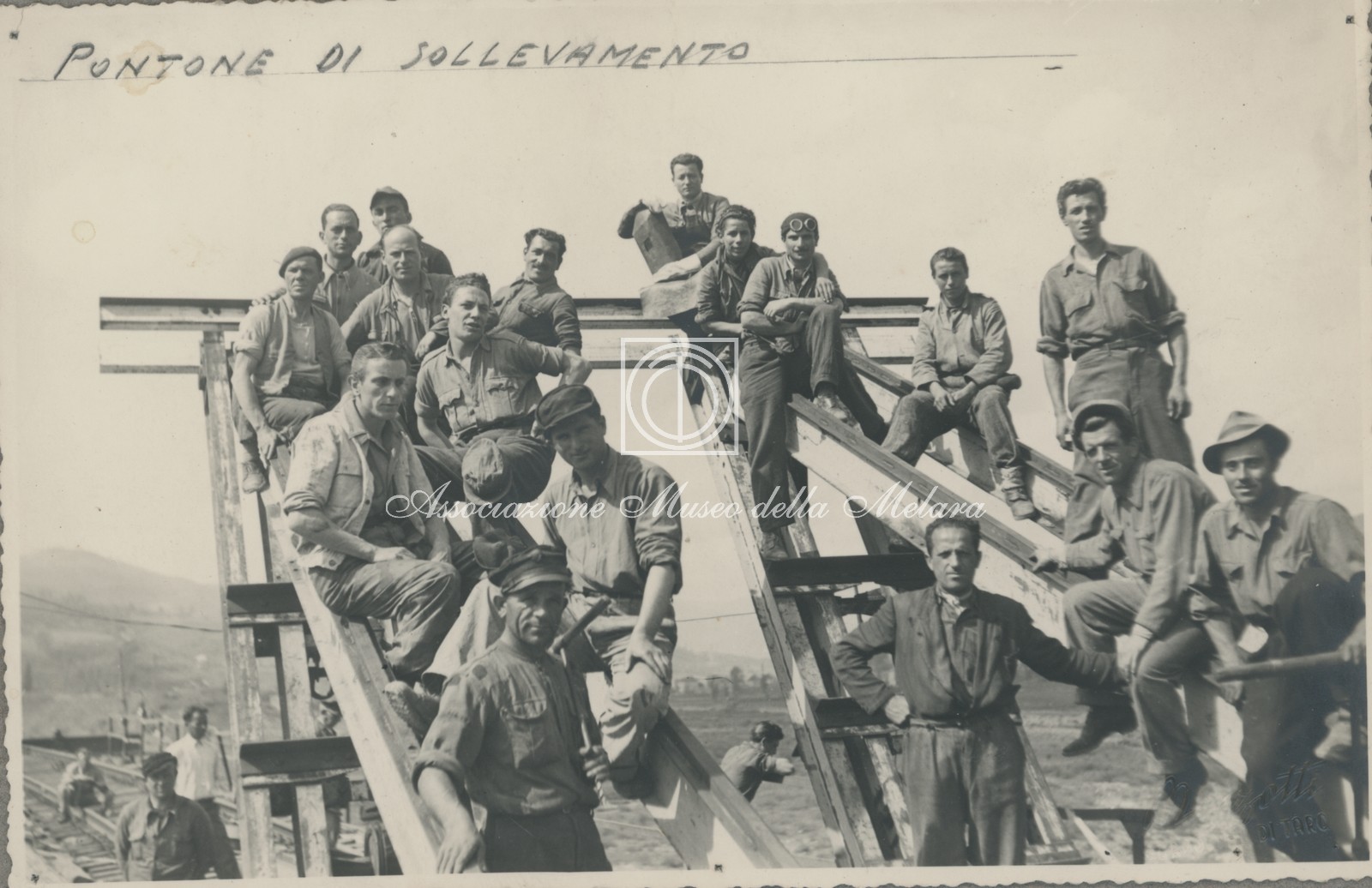Operai in posa sul pontone di sollevamento