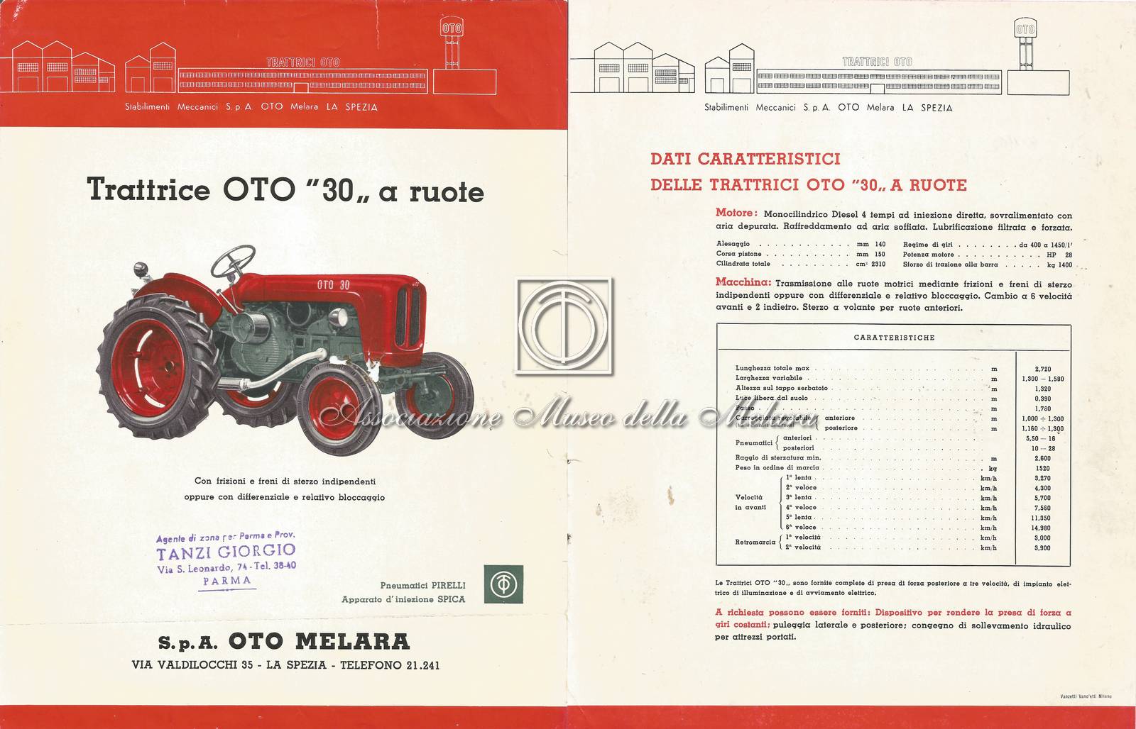 - E' presente il timbro di proprietà del commissario di vendita Tanzi Giorgio, con sede a Parma.